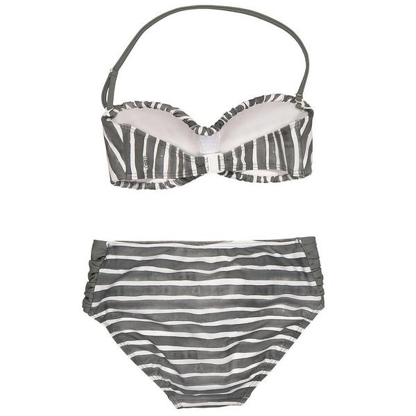 Dieser Bandeau-Bikini von BASEFIELD begeistert mit einem speziellen Batik-Verlauf im Streifenmuster mit Klecksen. Das Bikinitop bietet mit seinem abnehmbaren Neckholder zwei Tragevarianten, wobei an den Seiten eingearbeitete Stützstäbchen optimalen Sitz garantieren. Komplettiert wird der Bikini durch eine passende Hose mit gerafften Seitenpartien. Details: abnehmbarer Neckholder-Träger, schließt mit Clipverschluss, eingearbeitete Cups, breite Seitenpartie am Höschen. In verschiedenen Farben erhältlich.